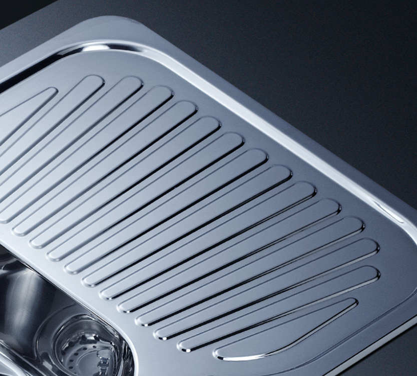 阿發(fā)水槽立邊采用國際先進(jìn)的10-25°小R角一次成型拉伸技術(shù),更具立體感與時(shí)尚潮流,亦能充分?jǐn)U展水槽利用空間;一次成型拉伸技術(shù),杜絕了焊接工藝易產(chǎn)生的水槽生銹,脫焊事故,充分保障水槽50年以上的使用壽命