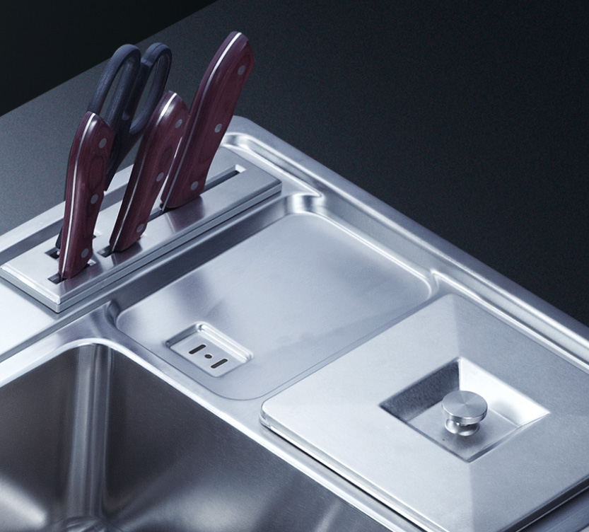 水槽四邊條采用一次成型的折彎加強筋工藝,雙倍堅固,承重力更強,解決了普通焊接工藝容易出現的凹點、脫焊、易割手等問題。專業配置的密封條和固定夾,安裝平整度高,不滲水,不松動