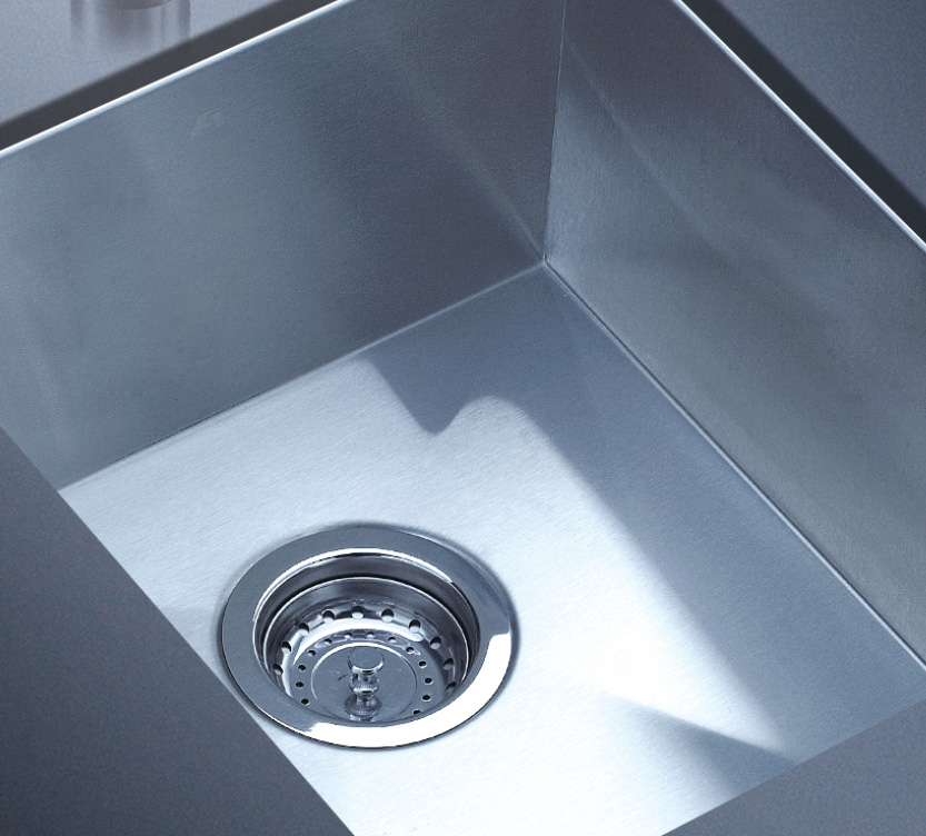 阿發水槽立邊采用國際先進的10-25°小R角一次成型拉伸技術,更具立體感與時尚潮流,亦能充分擴展水槽利用空間;一次成型拉伸技術,杜絕了焊接工藝易產生的水槽生銹,脫焊事故,充分保障水槽50年以上的使用壽命