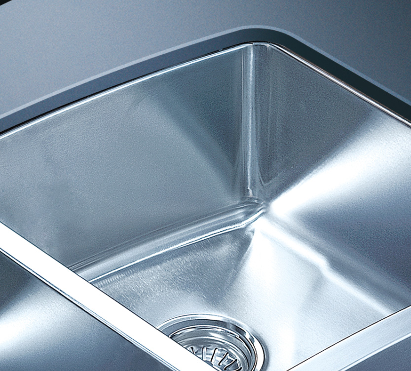 阿發水槽立邊采用國際先進的10-25°小R角一次成型拉伸技術,更具立體感與時尚潮流,亦能充分擴展水槽利用空間;一次成型拉伸技術,杜絕了焊接工藝易產生的水槽生銹,脫焊事故,充分保障水槽50年以上的使用壽命